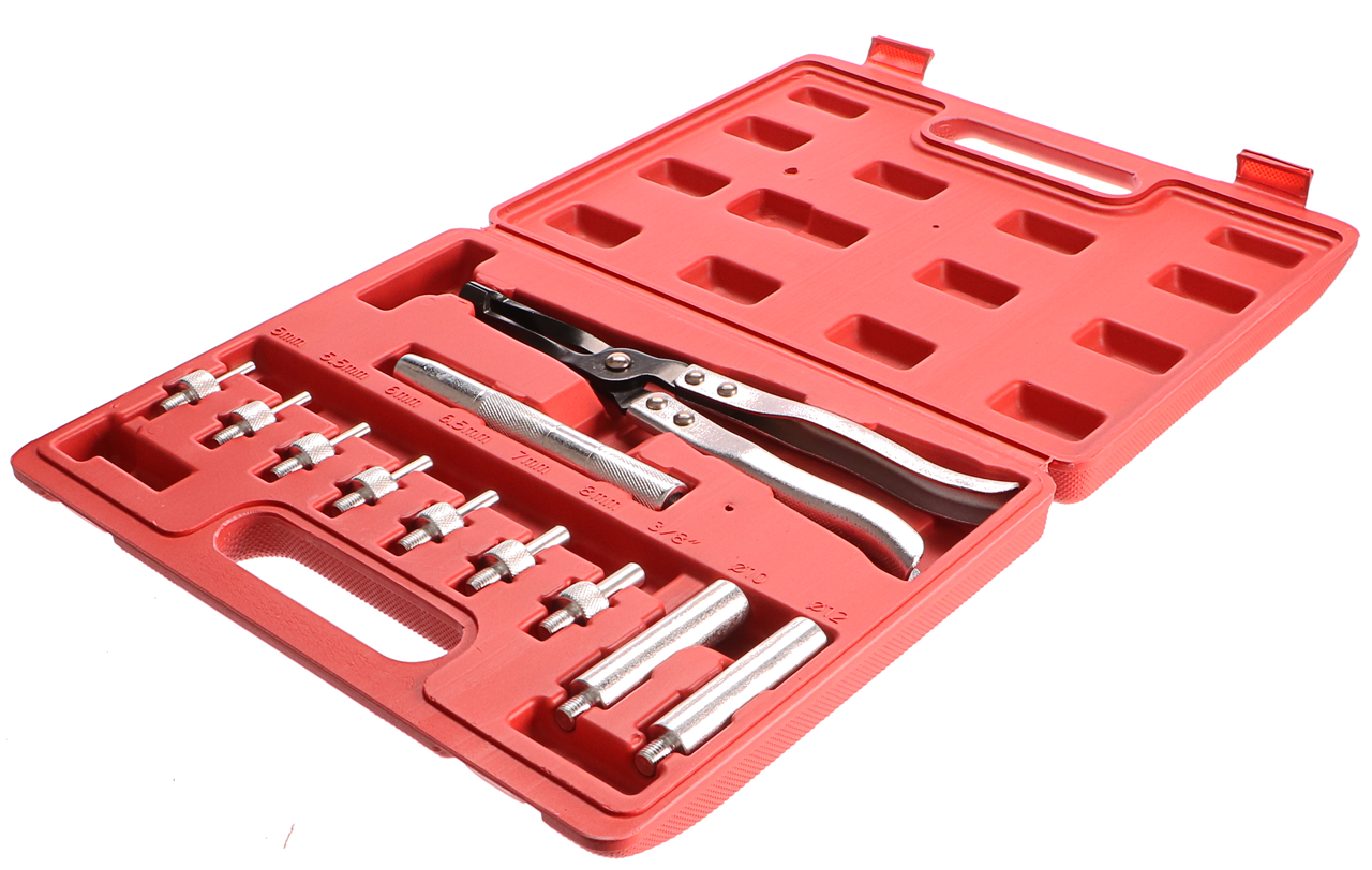 Призначений для зняття і установки сальників клапанів. Адаптери для сальників, виготовлені на високоточному обладнанні, призначені для правильної установки сальників клапанів. У комплект входять спеціальні плоскогубці і набори роз'ємів, які підходять для всіх типів клапанів.